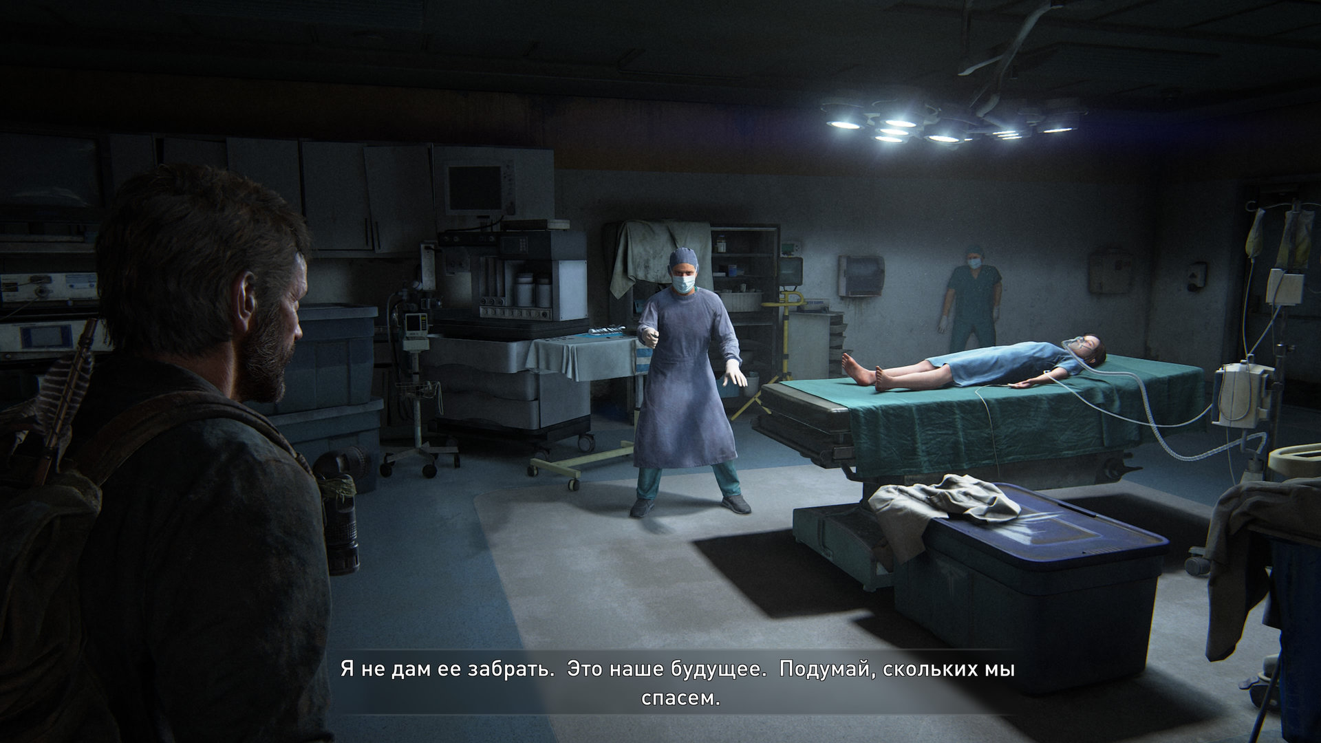 Суровая правда такова, что Светлячки лишили девочку выбора, как можно скорее погрузив ее под наркоз, пока она не очнулась. Для них синтез вакцины — цель, которая оправдывает любые средства. В этом повинен и Джоэл, который так же, как и Цикады, лишил Элли агентности: даже если бы герой услышал от дочери, что она готова на операцию, с огромной долей вероятности он поступил бы точно так же.