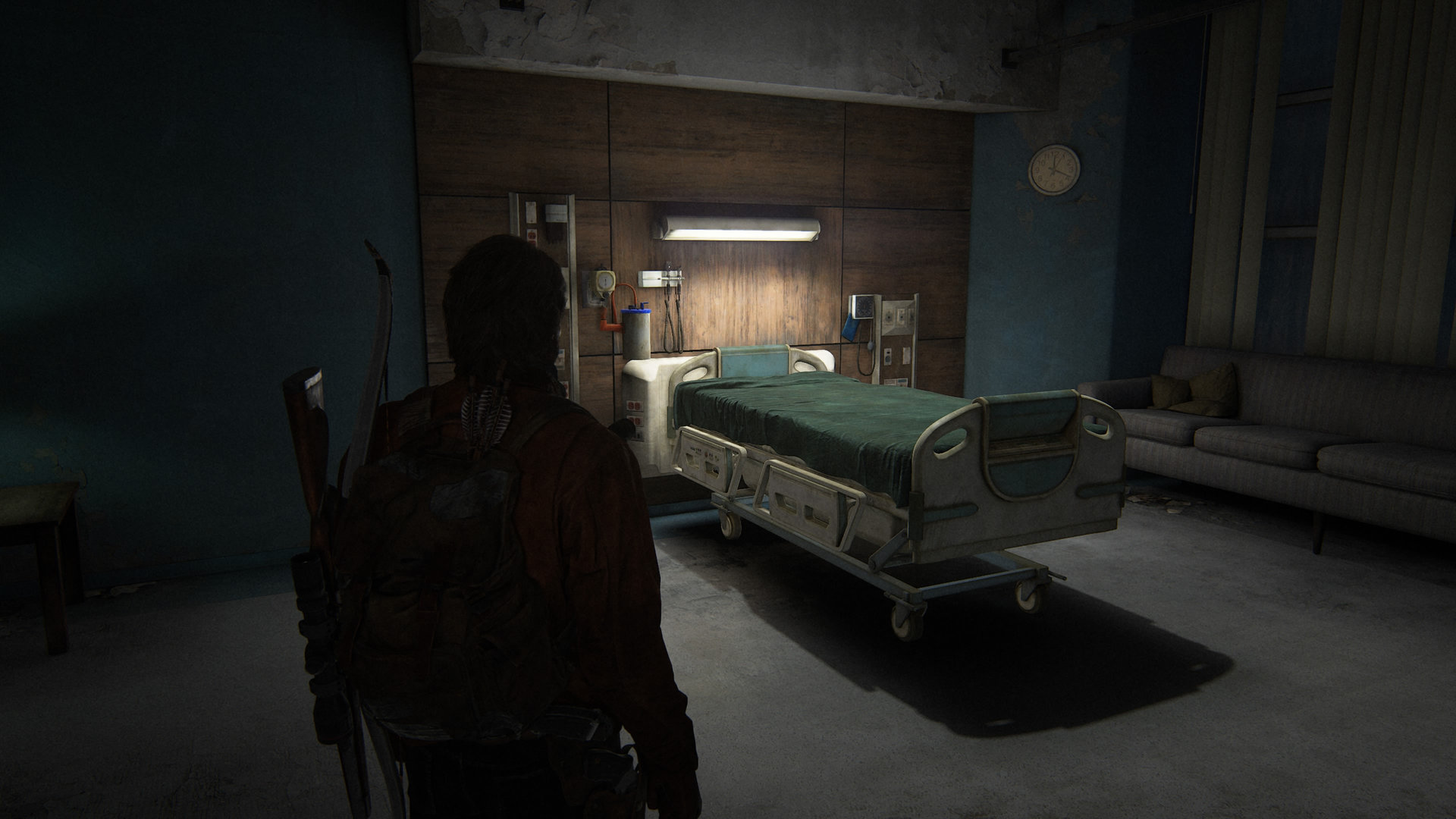 Дойдя до убежища, в котором герои планируют дождаться наступления темноты, чтобы незаметно выйти за границу карантинной зоны, Джоэл сразу заваливается спать, в очередной раз не давая себе даже шанса хоть сколько-то сблизится с тем, кто напоминает ему о погибшей дочери. Перед сном Элли, которая не знает, чем себя занять в ожидании, замечает, что часы Джоэла сломаны — та, в ком в дальнейшем он будет видеть собственного ребенка, указывает ему на единственный артефакт прошлого, напоминающий о Саре.