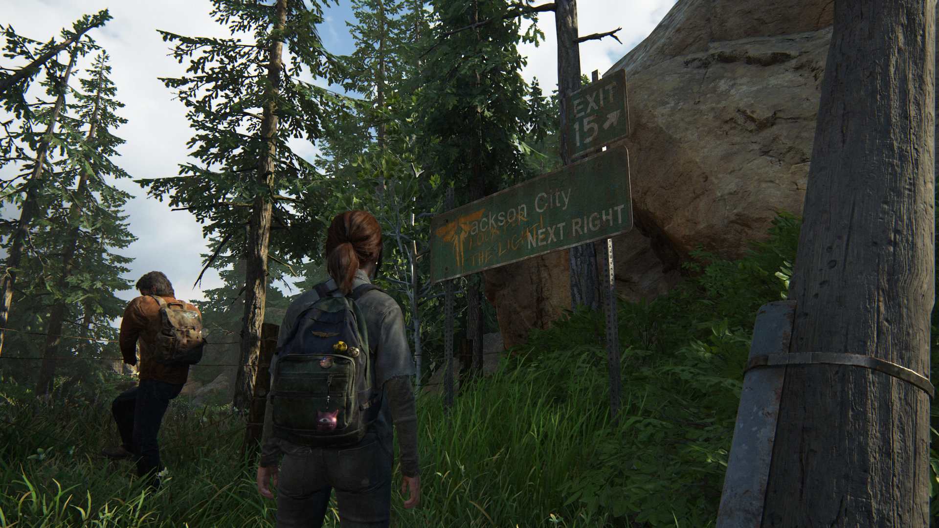Стремительно несясь по шоссе истории к финалу, маячащему на горизонте, перед героиней открывается вид на Джексон — ее новый дом. Я нахожу интересным решение сделать в игре два общих плана поселения: в моменте, где Джоэл все-таки выбрал довести Элли до Цикад; и в конце сюжета, когда миссия главных героев осталась позади.
