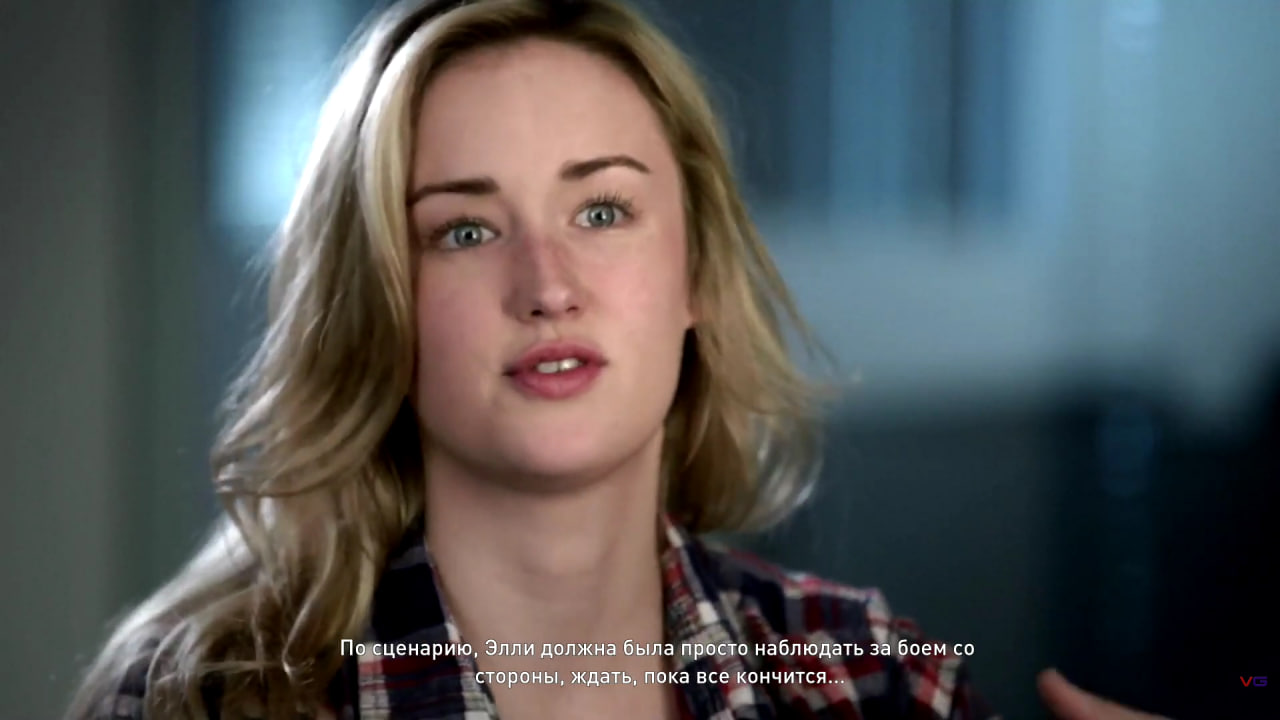 Очевидно, у неё (Элли) есть детектор лжи, она прекрасно понимает, что он (Джоэл) врёт, но она говорит: «Хорошо, давай посмотрим, что из этого выйдет».Эшли Джонсон