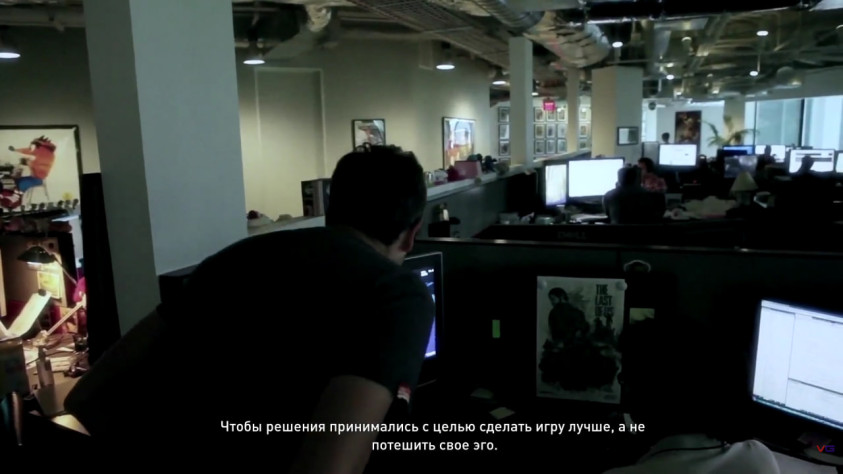 В документальном фильме «Grounded», посвященном истории создания The Last of Us, Нил Дракманн подчеркивает важность работы сообща: в студии Naughty Dog учитывается мнение каждого. Это подтверждает весь каст, начиная с актера, сыгравшего Генри, одного из второстепенных персонажей в главе «Питтсбург», заканчивая Эшли Джонсон, подарившей нам Элли в том виде, в котором мы ее знаем.