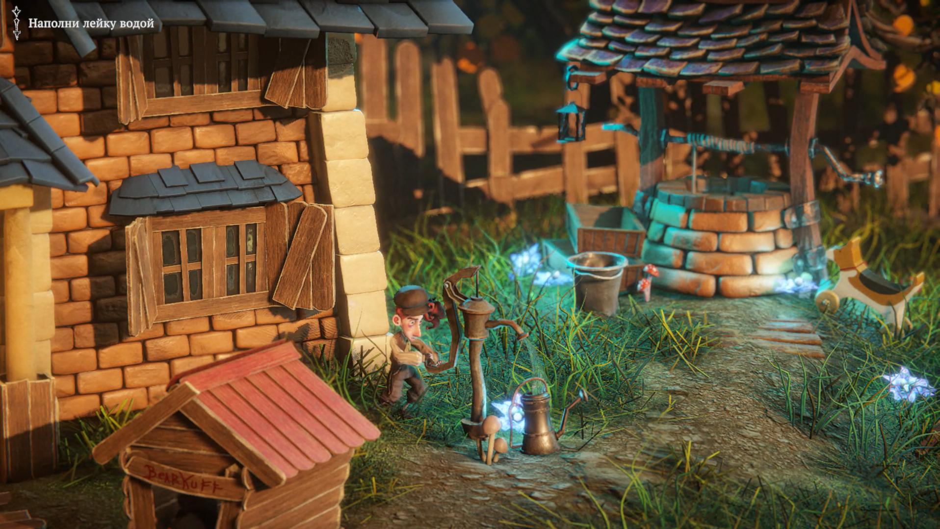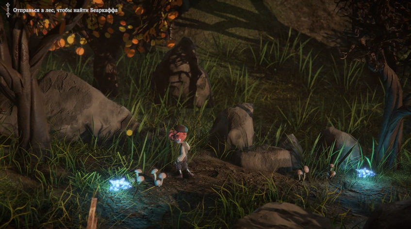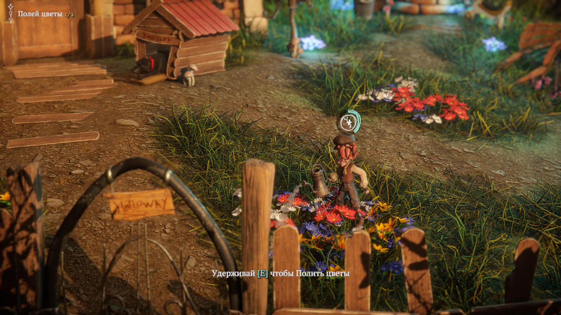 Территория сада небольшая, но объектов на ней много: пес Беаркафф, цветы, колодец, грибы, тыквы и моркови, дикие травы и лунные лепестки. Все очень живописное, яркое, сочное, насыщенное деталями — и со всем этим мы можем взаимодействовать.