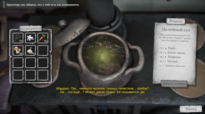 Все совершаемые действия просты и понятны (кроме разве что начала готовки супа — у меня ушло несколько минут, чтобы понять, что нужно пододвинуть стул, а не пытаться запустить механику через запрыгивание на гарнитур).