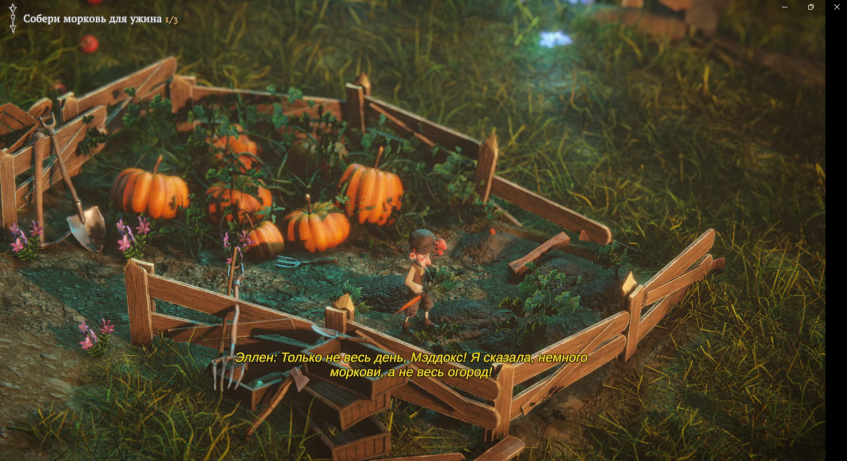 Игра начинается с того, что главный герой, Мэддокс, находится в домашнем саду. Мы слышим из дома голос заболевшей мамы, говорящей сначала полить цветы, а потом собрать овощи для лечебного супа.