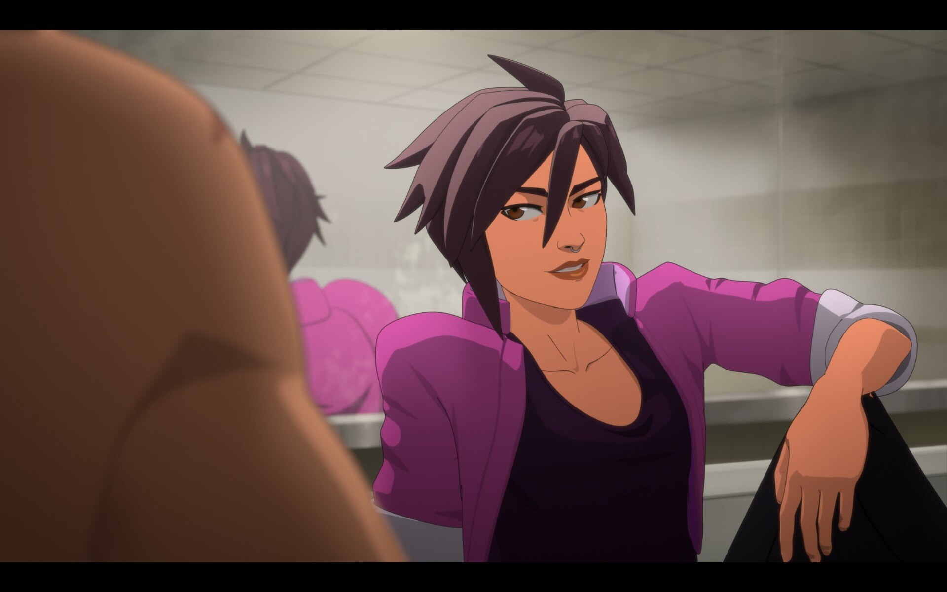 Увы, если вы из тех, кому больше по вкусу полудемоница Малевола Гибб, то закрутить с ней роман не получится. Во-первых, по чисто технической причине — в Dispatch нет такой возможности. А во-вторых, по сюжету она девушка Сонара. Согласно одному из сопутствующих игре комиксов, именно она привела его (и себя) в SDN, чтобы избежать наказания за предшествующую противозаконную деятельность.