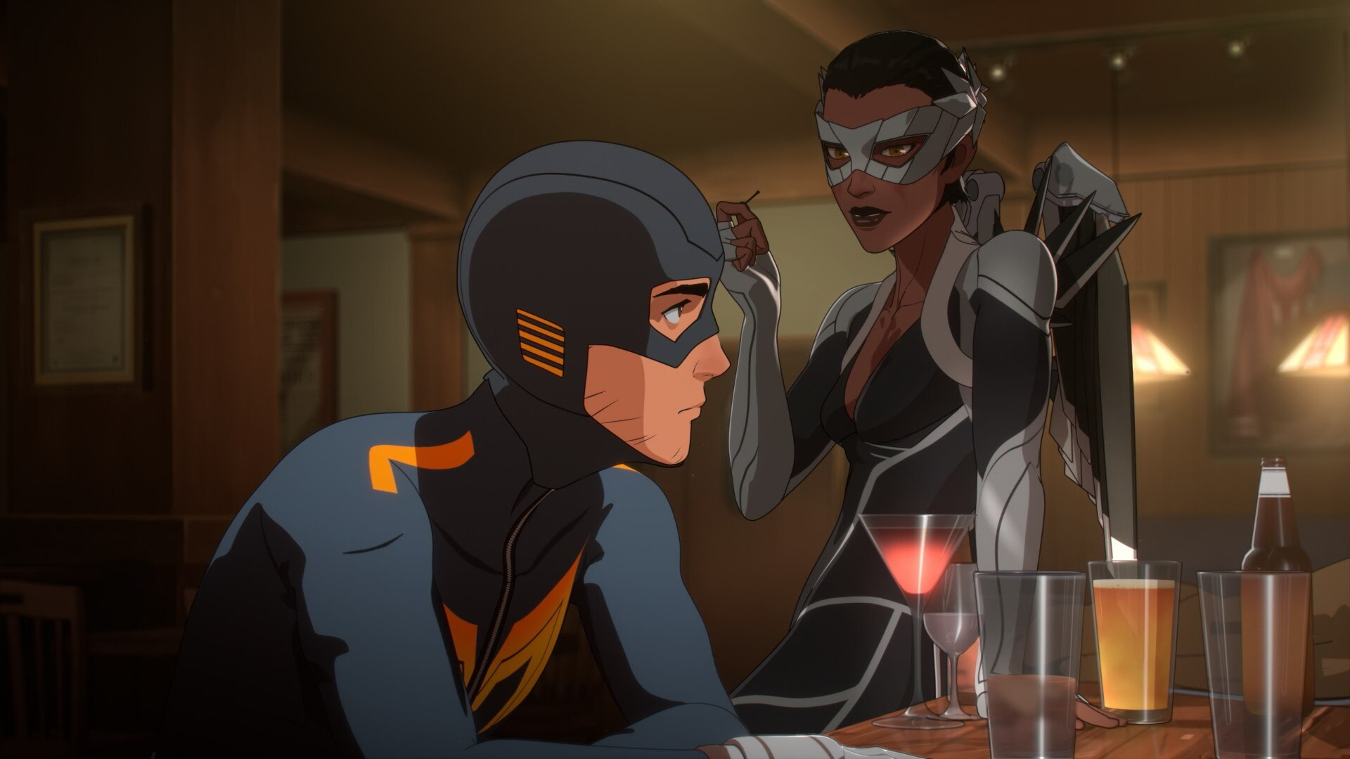 Что точно является противоположностью — так это отношения Роберта с Невидивой и Блейзер. Одна — начальница, другая — подчинённая. Одна — состоявшийся супергерой и по крайней мере стремится к высоким моральным стандартам, другая — едва покончившая (а может и не совсем покончившая) со злодейским прошлым. Но главное — в своей человеческой жизни Мэнди также эмоционально взрослый человек, она понимает чего хочет и хотя и чувствует себя несколько неуверенно без своего кристалла, всё равно готова отстаивать свои идеалы и идти на жертвы. Кортни же, наоборот, мечется туда-сюда, ищет поддержки и совета, не зная до последнего как поступать.