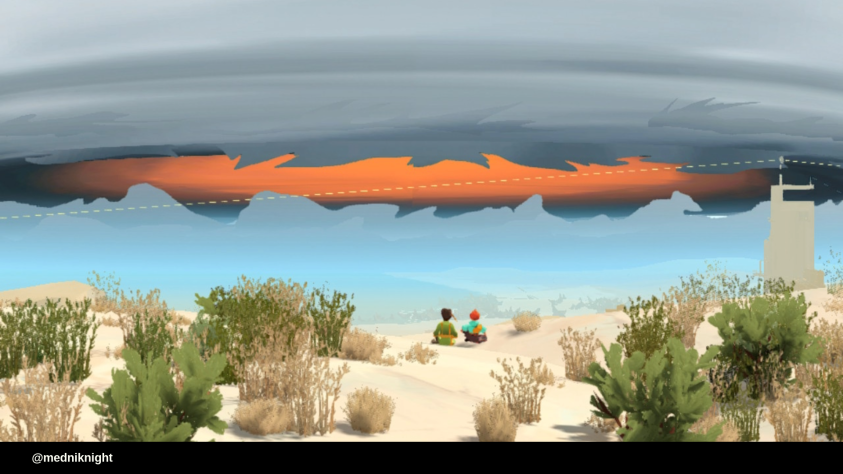 Никакого текста не хватит, чтобы поговорить о всех достойных сюжетах игры или источниках вдохновения для разработчиков. В этом смысле видеоигра как предмет искусства поражает вариативностью опыта. Caravan SandWitch сочетает в себе множество, на первый взгляд, разрозненных тем. На одной планете каким-то образом уживаются обитатели деревни, раса разумных лягушек, брошенные технологии Концорциума, осознавшие себя живыми существами роботы, культ песчаных ведьм, кочевники, море, пляжи, скалы, леса, пески и огромный шторм на том краю пустыни. Мастерство любого творца не в том, чтобы придумать гениальную идею или задумку, а в том, чтобы связать доселе бессмысленные или не вызывающие никаких эмоций элементы.