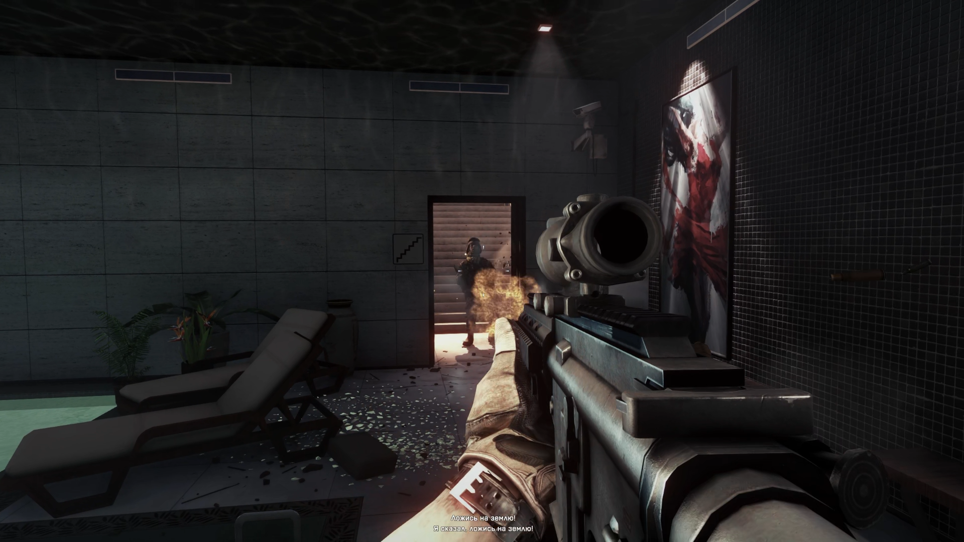 Аккуратничать больше не приходится, ведь мы уже вошли в открытое столкновение с русскими. Но тут же корешимся с одним из них, стреляем в командира и попадаем на допрос к ЦРУшникам. И этим допросом игра начинается, им она продолжается, на нём же и заканчивается. Короче говоря, весь сюжет подаётся как воспоминания или выдаваемая информация на этих диалогах с пристрастием.