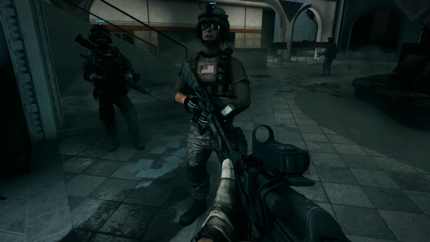 Ладно, это всё шутки юмора. А вот где его нет, так это в самой игре. Атмосфера сурьёзная как ёпрст и становится понятно какую роль выполнял консультирующий команду разработчиков военный. С его подачи, персонажи в игре выглядят, говорят и ведут себя, как и подобает воякам. Вроде оно и правильно для милитари шутеров, а вроде и понимаешь, что никаких интересных диалогов ты тут не услышишь. Подсерия Bad Company в этом плане куда более интересна.