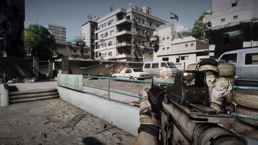 Вот мы в поисках пропавшего отряда ввязываемся в бой с иранской военизированной повстанческой группировкой, по крышам ползаем голубей гоняем под снайперским обстрелом, а затем и вовсе оказываемся под завалами небоскрёба.