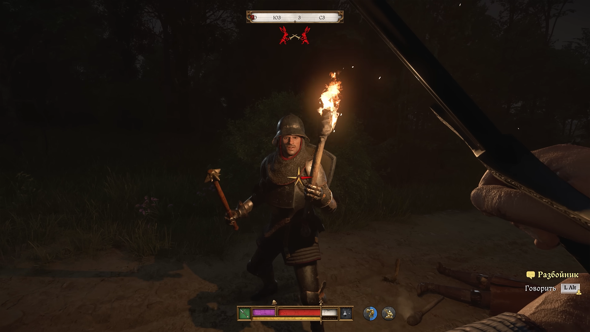 Ну и, наконец, лично для меня спасительный шнапс является ещё одним элементом игровой прогрессии. Обе части KCD отпускают тебя в открытый мир в примерно одинаковом состоянии: ты слаб и у тебя очень мало ресурсов. В первом «кингдом каме» причиной тому было нападение половцев, во второй — неожиданная атака разбойников. И вот, пока ты только делаешь свои первые шаги в игре, во многом видится серьёзная угроза. Без лишнего десятка сохранений под рукой даже самых обычных бандитов на тропах безопаснее обходить.