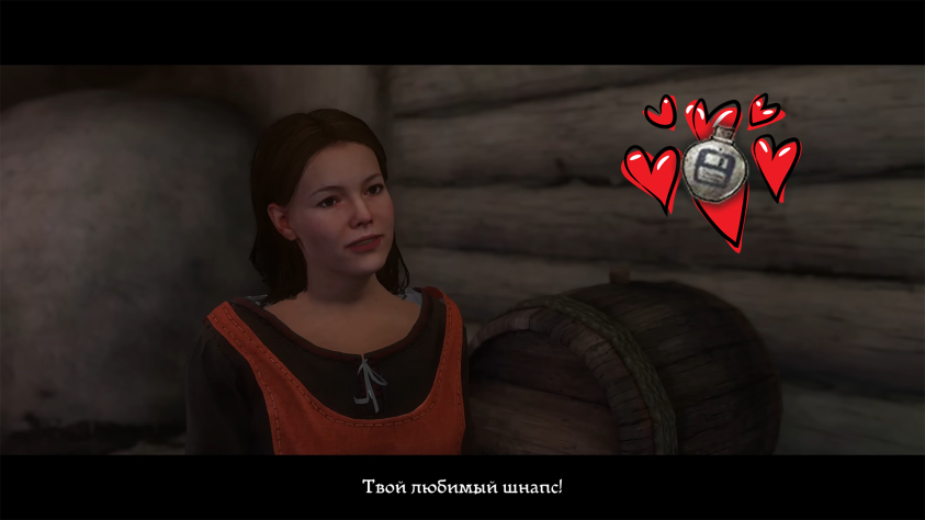 То есть без всяких условностей ты принимаешь, что спасительный шнапс реально существует внутри мира, в котором находится твой персонаж. И это, кстати, филигранно ложится на ролеплей: перед предстоящей трудностью, когда игрок хочет сохраниться, Индржих как будто для храбрости накатывает чуть-чуть алкоголя. Ну а кто бы не выпил, попав на его место?