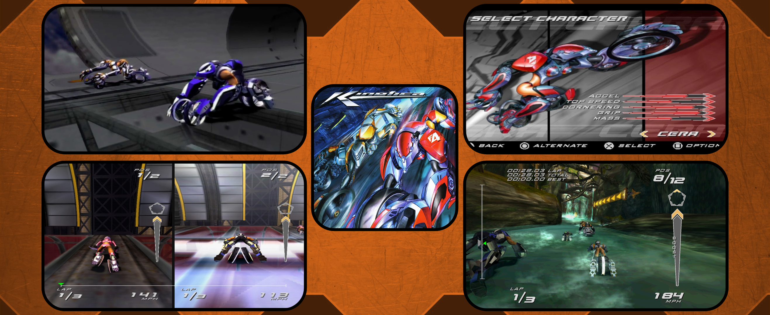 Kinetica — проект, который на бумаге выглядел просто изумительно: необычная задумка, стильный, пусть и слегка несуразный дизайн гонщиков, отличная музыка и технологические новшества новой тогда консоли PlayStation 2.