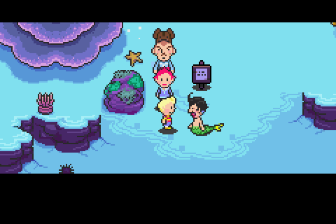 Честно говоря, я был крайне удивлён, что эта серия не вернулась в инфополе после выхода Undertale. Они прям до жути похожи, в плане умора так точно. Например, в одном месте дорогу Лукасу (он главный герой) будет закрывать огромный камень, но сдвинуть его довольно просто - нужно просто попросить его отойти в сторону, он без проблем уступит вам дорогу. За ним будут ещё всякие камни, два из них будут согласны двигаться только влево и вправо, а третий только вперёд и назад, нужно правильно поговорить с ними чтобы они открыли дорогу перед вами.