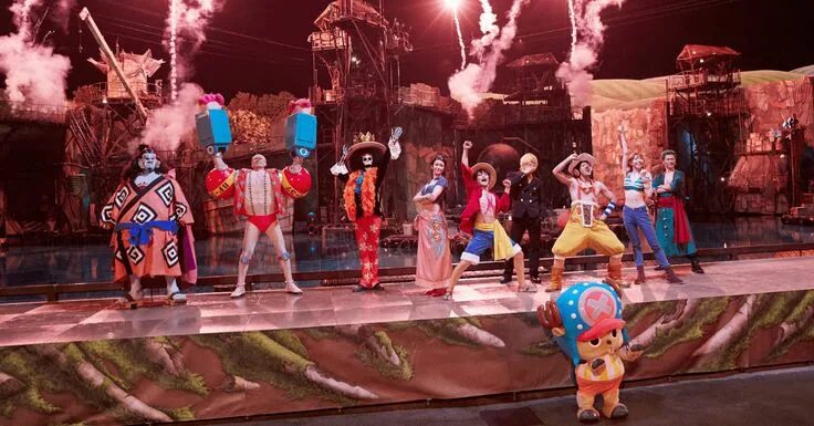 Одним из самых известных примеров считается ежегодное представление One Piece Premier Show, проходящее в парке Universal Studios Japan. Это полноценное сценическое шоу с актёрами, каскадёрами и пиротехникой, которое переносит зрителей в оригинальные приключения команды Луффи. Постановки часто создают самостоятельные истории, не повторяя сюжет манги, благодаря чему фанаты получают уникальный опыт. Особое внимание уделяется зрелищным боям, юмору и эмоциональным сценам, максимально приближённым к духу оригинала.