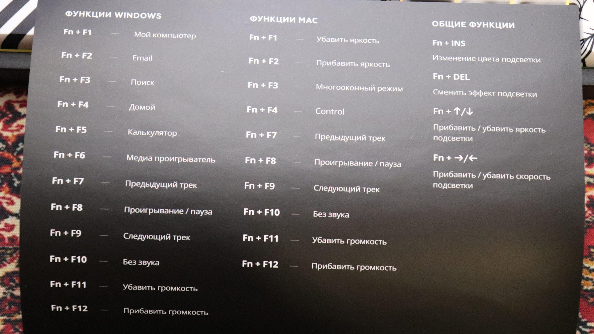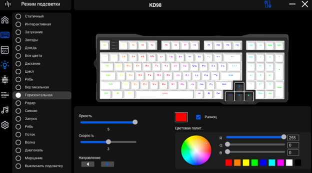 · Цвет подсветки клавиш — RGB