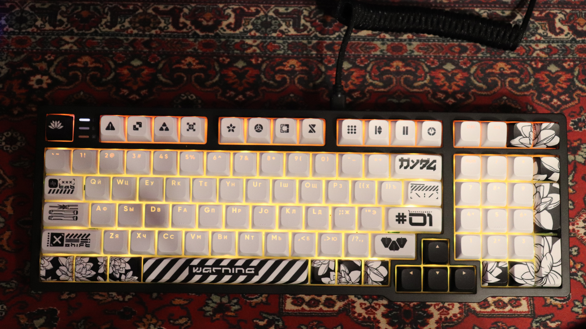 Про ощущения при использовании скажу только хорошее, клавиатура с коробки звучит очень приятно, и устанавливать другую шумоизоляцию и плейт не вижу необходимости, звук нажатий тихий и приятный не врезается в уши, клавиши не дребезжат и посторонних звуков не издают. Клавиши тактильно очень приятные все символы хорошо читаемы и печатать одно удовольствие. Подсветка клавиатуры RGB, есть регулировка яркости, 20 предустановленных режимов подсветки, претензий к подсветки нет, работает всё отлично.
