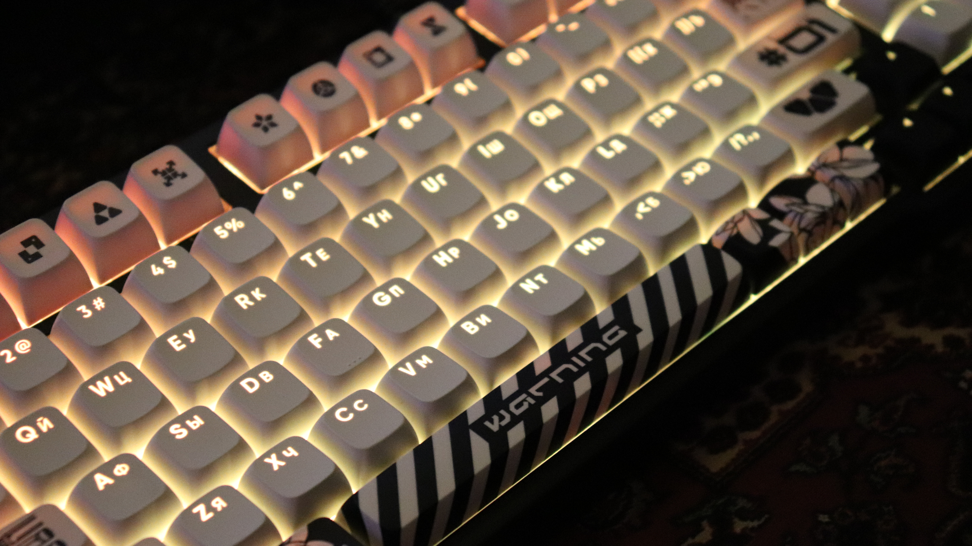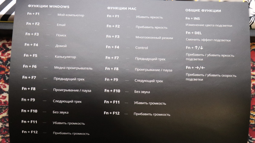 В остальном про комплектацию особо сказать не чего, она базовая. Затронем тогда сразу переключатели и кейкапы для приличия, хотя я считаю, что опять же девяносто процентам людей, эта вся информация и не нужона, как интернет бабке из мема. Ребята придумали сделать переключатель прозрачными дабы у четланей бУкавы святились в темноте, а в остальном всё тоже самое и ничего там экзотического нет, да и не факт, что про прозрачный корпус им не кто не подсказал. Кейкапы или квадратики с бУкавами, тут тоже особе нечего рассказать, пластик PBT двойного отлива что даст вам долговечное покрытие, бУкавы стераться не будут, хотя и на обычных квадратах у меня ничего не стиралось, но если что сможете их заменить они отдельно тоже продаются. Но буду справедлив сами кейкапы и клавиатуры с нормальной русской раскладкой не так просто найти и ребята молодцы, что продают их отдельно, почему-то наши братья китайцы не горят желанием производить их нормально, видимо рынок маловат.