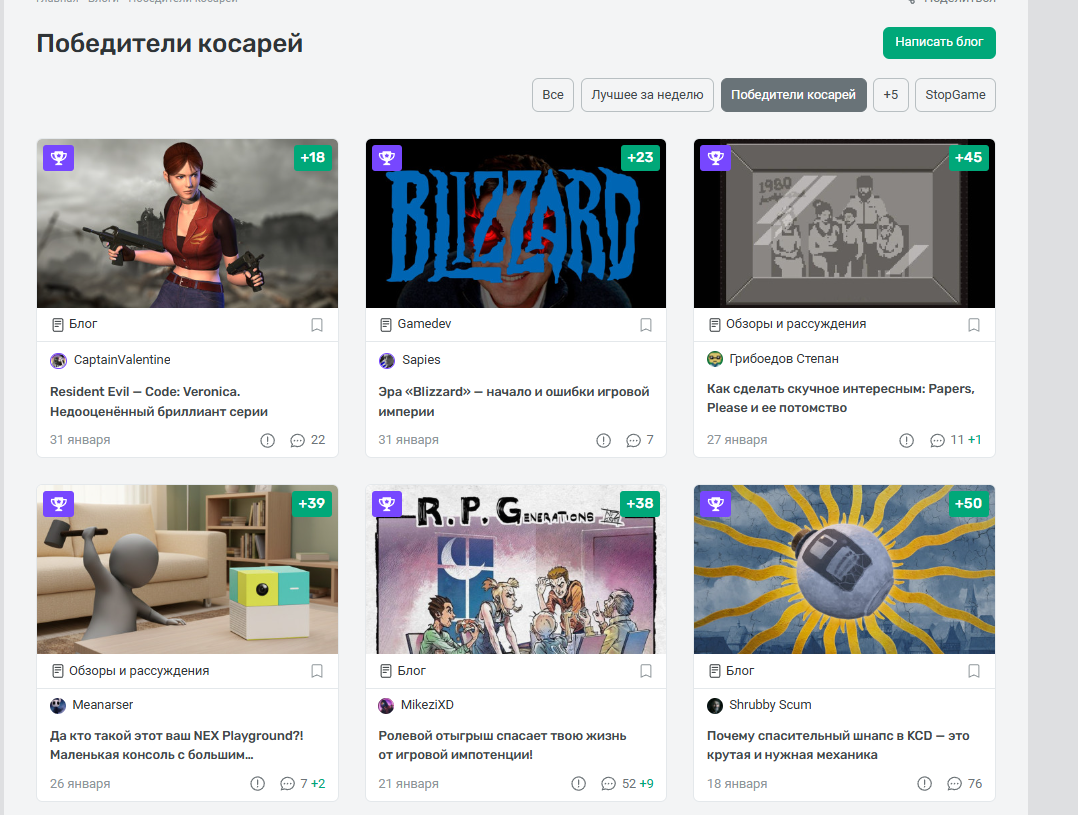 Блоги на стопгейме несмотря на то, что функционально слабоваты являются