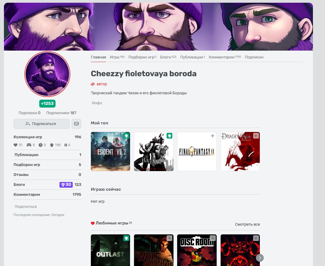 Чиззи Фиолетовая Борода, без сомнения, человек-трудяга, так как помимо блогов собственного производства он ещё и занимался таким делом, как популяризацией блогов на StopGame, черт, я сам был тем, кто попадал в его подборку, а по итогу сидел и кумекал, какой бы блог выбрать для следующего месяца, год прошёл как ничто, и с одной стороны грустно, что с этой идеей теперь нельзя выступать по определённым правилам, все в этой подборке свидетели, что она держалась больше на Бороде.