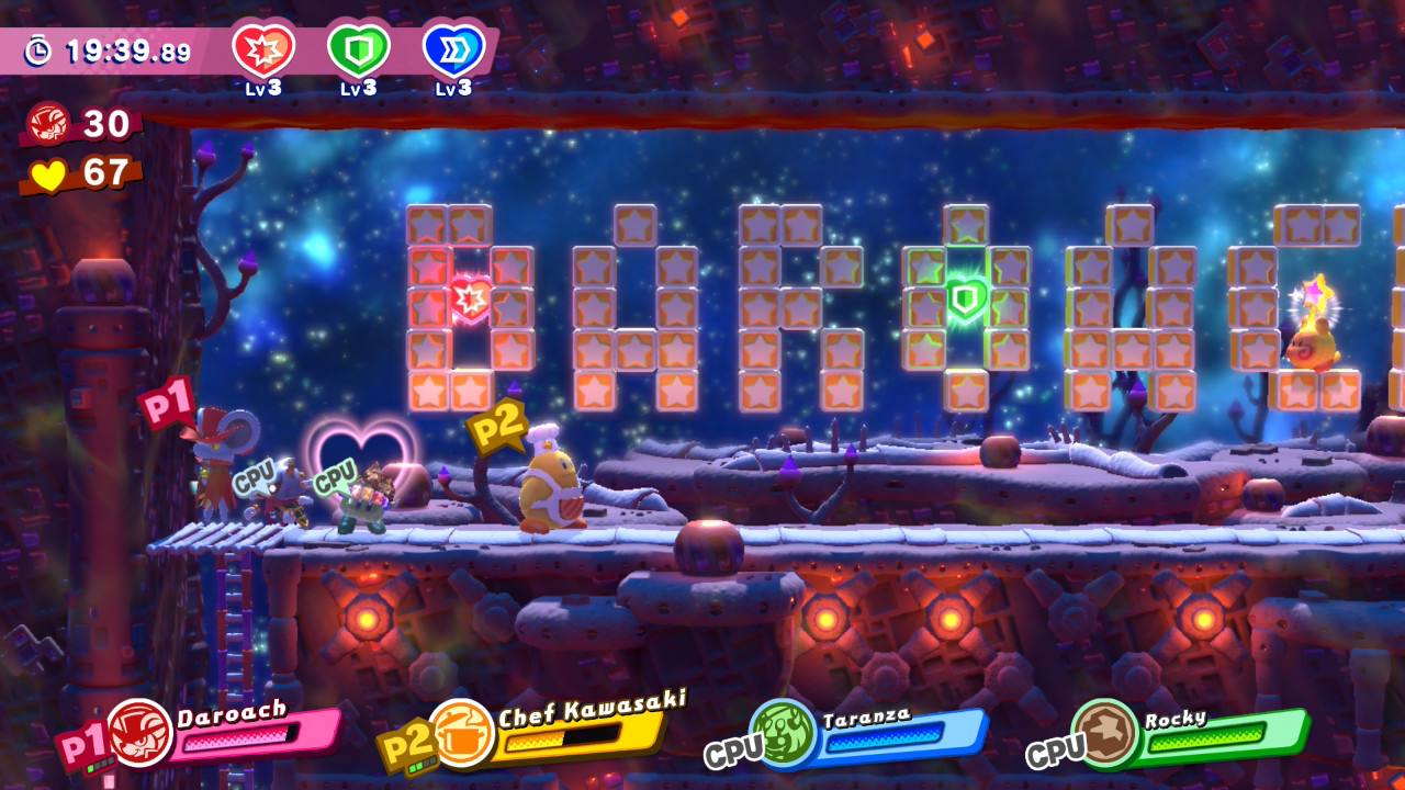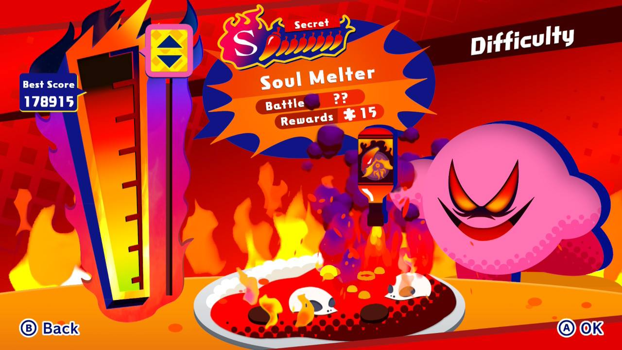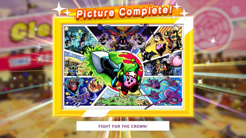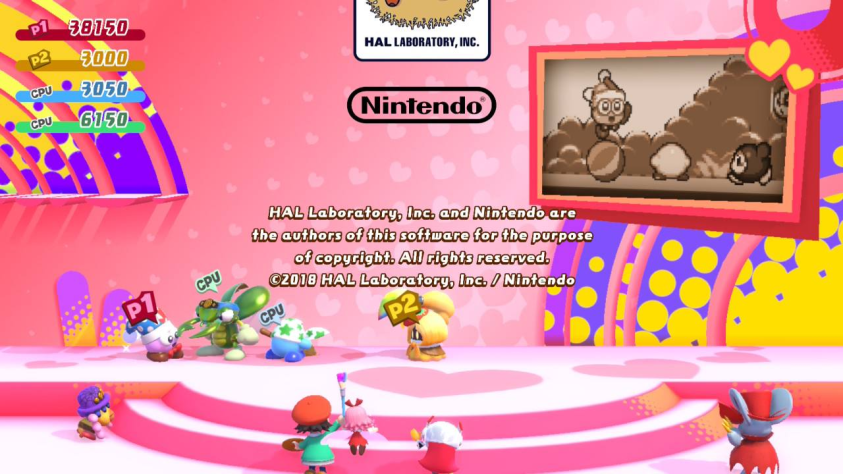 • В конце забега также дают небольшой арт с одним из первых появлений этого персонажа во вселенной Kirby, а сам герой занимает место зрителя в титрах вместе с другими пройденными. Казалось бы, мелочь, но мне очень нравится такая визуализация;