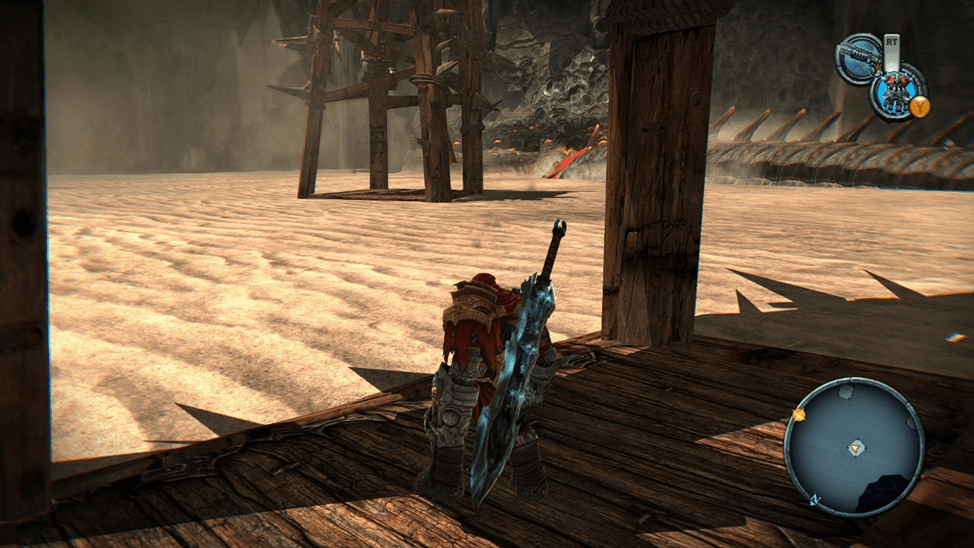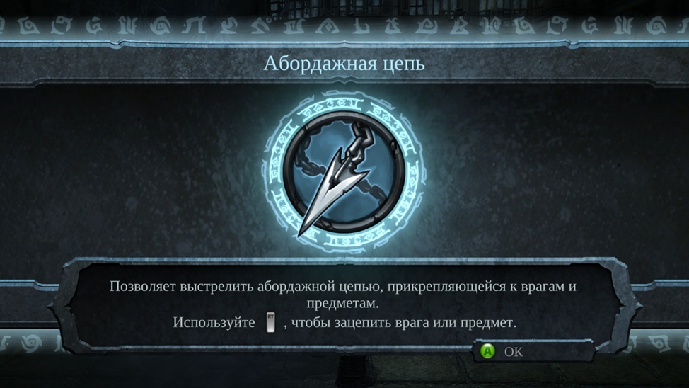 Второе оружие, которое мы можем добыть это коса. Она используется на другую кнопку и сделать комбо с ней и мечом тоже проблематично. Потому что да она либо откидывает, либо подкидывает врага. Переключатся между ними не нужно просто назначаешь кнопки и все. Количество приемов также ограничено. И я просто забыл о ее существовании сразу, как только купил. Мечом удобнее пользоваться чем косой. В плане оружия все очень плохо. Всего 3 оружия, для каждого есть свои приемы, но все это бесполезно. Перчатка, которую война получает, вспоминаешь про нее, когда нужно ломать кристаллы. Бить ей врагов неудобно, потому что она откидывает с одного удара. До абордажного крюка это бесит.