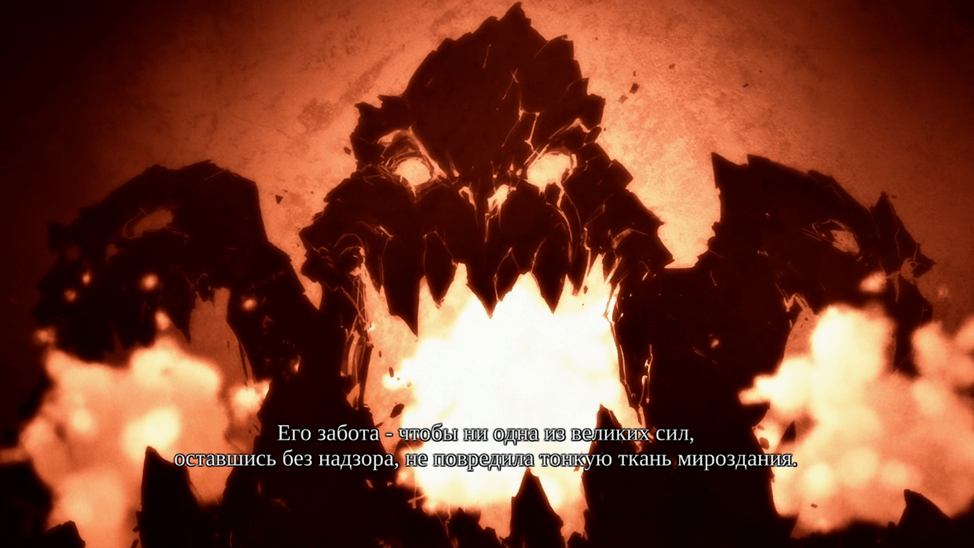 Нас встречает вступительный ролик, где нас вводят в лор местной вселенной. Рай и Ад воевали, пока внезапно не появились люди. Они ещё не готовы сражаться во вселенской зарубе и Обугленный совет решил, что надо дождаться людей и потом в честном кумите решить кто выживет. Обугленный совет странный персонаж непонятно кто это или что, нам дают инфу что поддерживает равновесие. Так вот люди вступят в битву, когда будут сломаны 7 печатей и тогда всадники апокалипсиса вступят в битву.