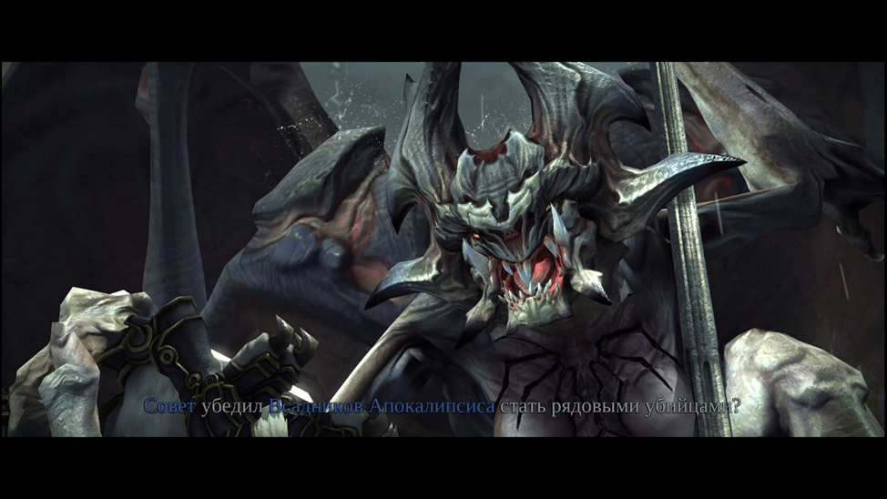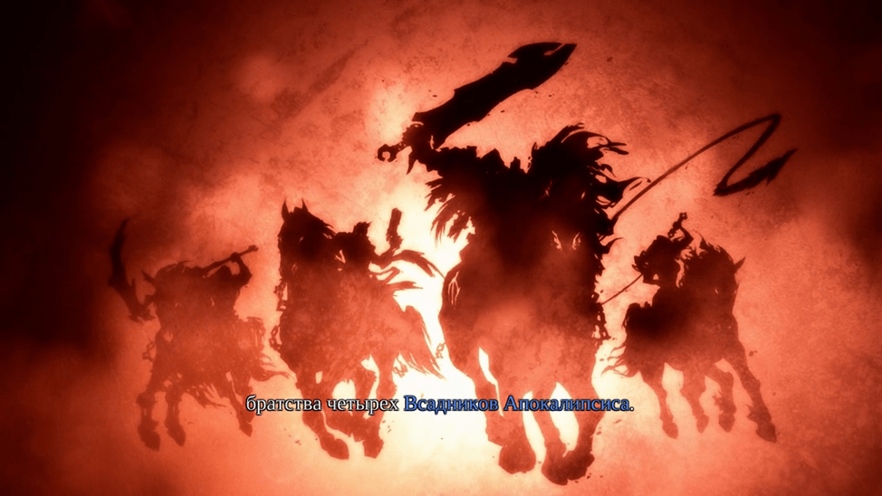 Вот такой краткий пересказ. Сюжет основан на библейских мотивах в своеобразной интерпретации. Имена некоторых всадников изменены чтобы звучать круто. У меня всего несколько претензий к сюжету. Почему его так мало и так много филеров. Ведь мы не узнали никто этот совет, откуда взялись всадники и лол как их зовут. Ну то есть да известно, что их всего 4: Война, Смерть, Раздор и Ярость. В игре про них ни слова нет. Если убрать все филеры, то получится что сюжет совсем короткий. Клифхэнгер хорош.