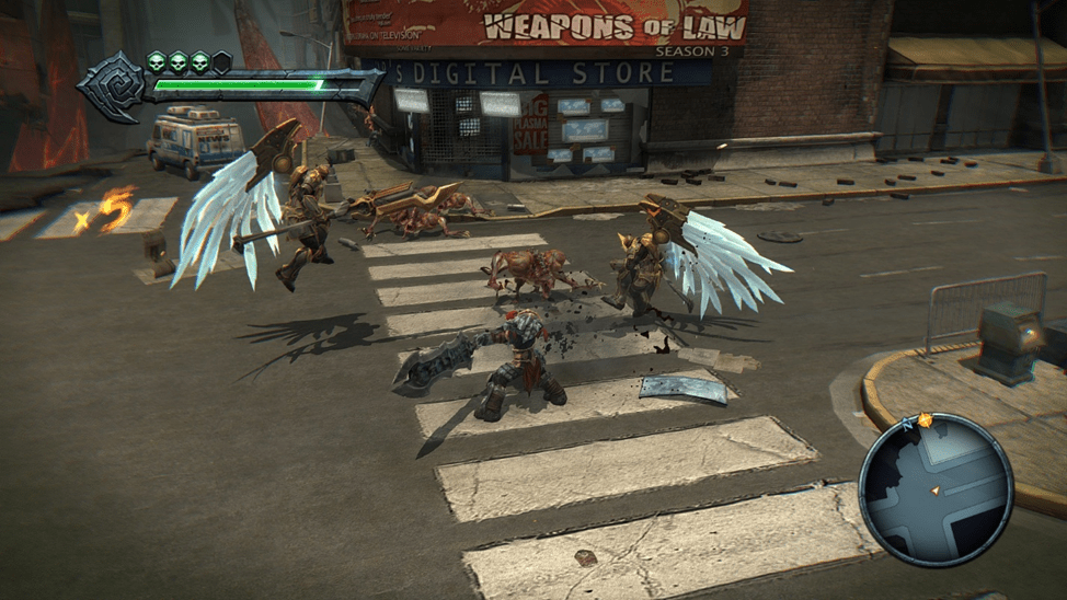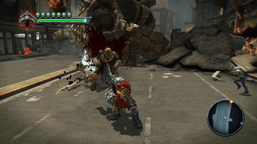 И тут появляется он. Война собственной персоной. И начинает нарезать демонов, ангелов и подвернувшихся людей (извините). Однако со временем силы покидают войну, что не мешает нам все равно рубить всех подряд. По пути нам встречается Аввадон, генерал ангельской армии. Он сильно удивляется нам и происходит диалог по типу: какого черта ты тут делаешь? Какого черта ты тут делаешь. Аваддона убивает гигантский демон, который появляется из-под земли. Война принимается за него и терпит поражение.