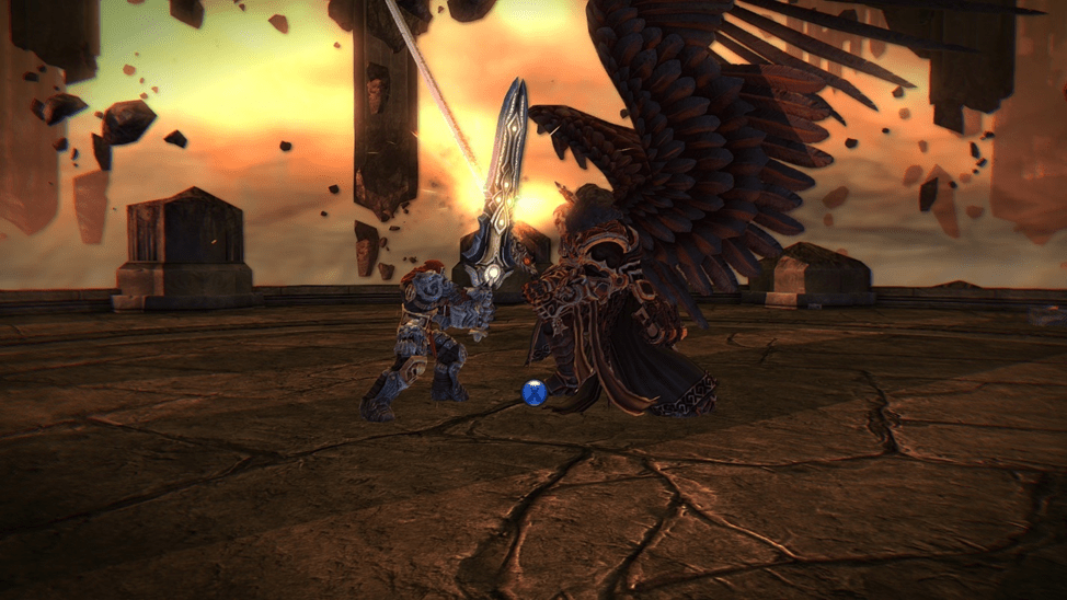 Разрушитель бегает по арене и предлагает не биться, а договориться. Нам нужно бежать рядом и сбивать его. После того как дракон окажется повержен, к Аваддону вернется его ангельский облик и драка уже будет раз на раз. На мечах.