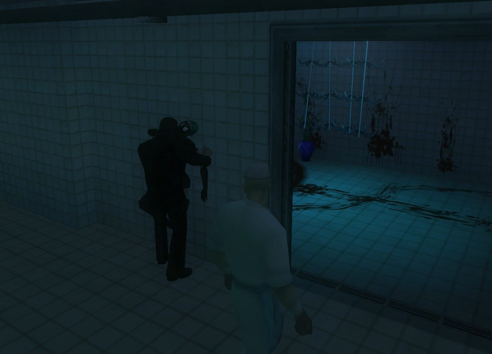 В этом крыле меняется освещение на темно-синее. Меняется музыка на зловещую и давящую.