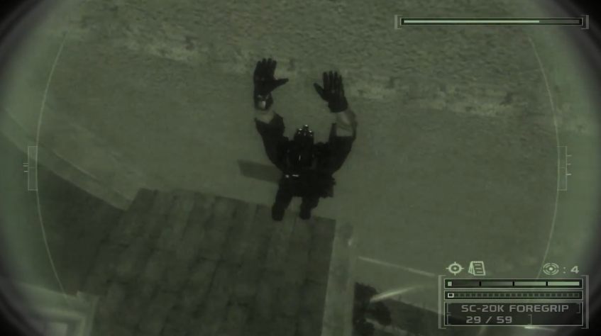 В отличие от шутеров, где ты несёшься вперёд и стреляешь во все стороны, в стелс-играх действует принцип "не спеши, подумОй", и главенствует знаменитая анимация "главный герой кродёться".
