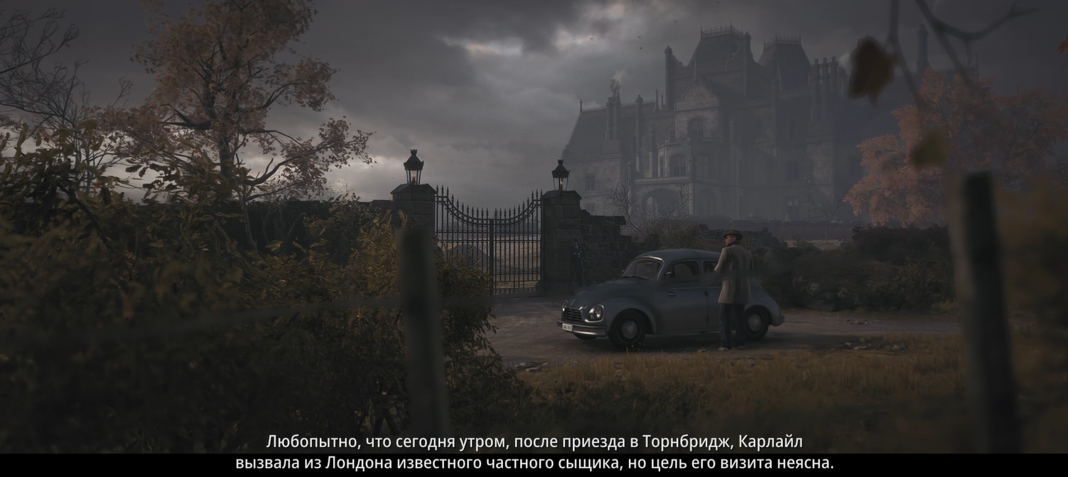 Буквально на подходе к особняку мы видим детектива, которого наняли для расследования.