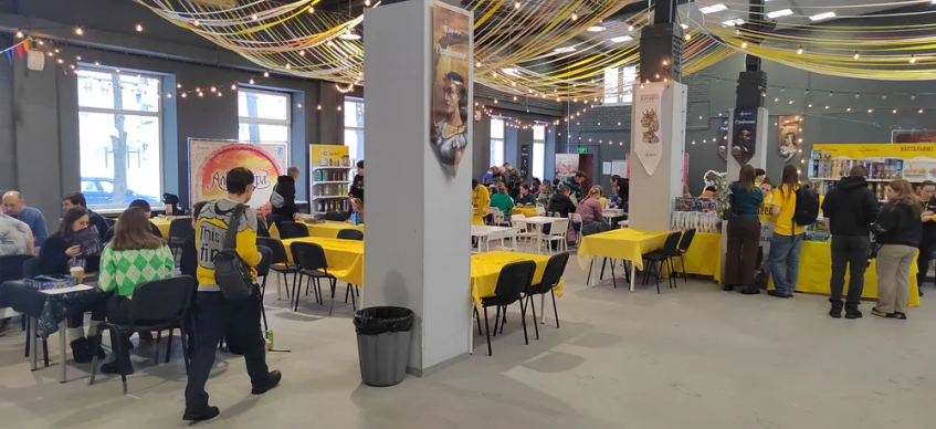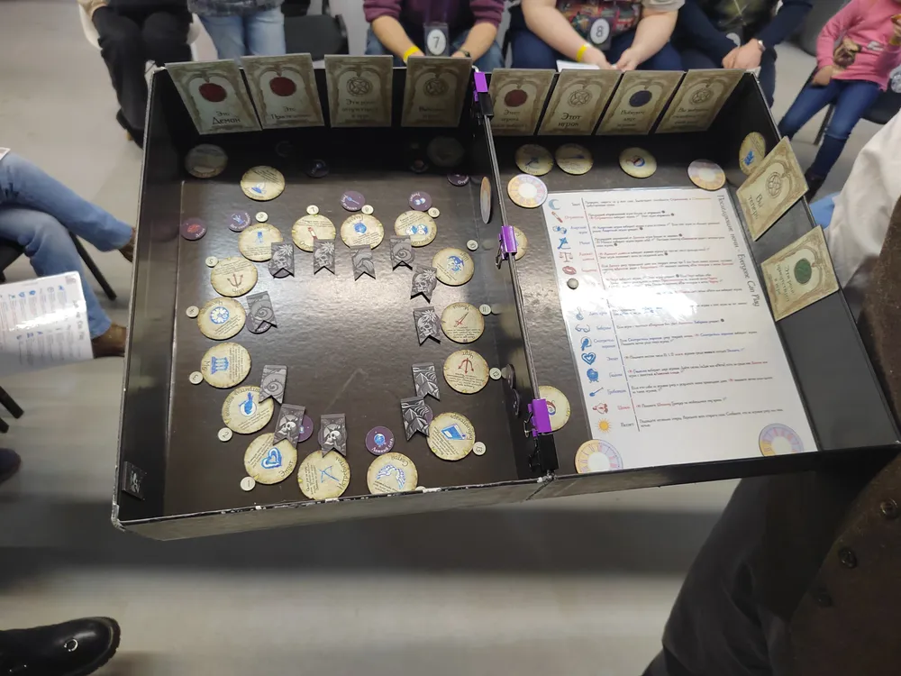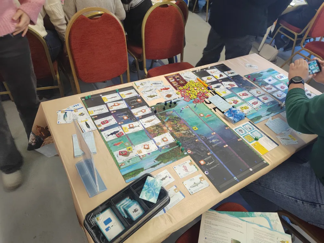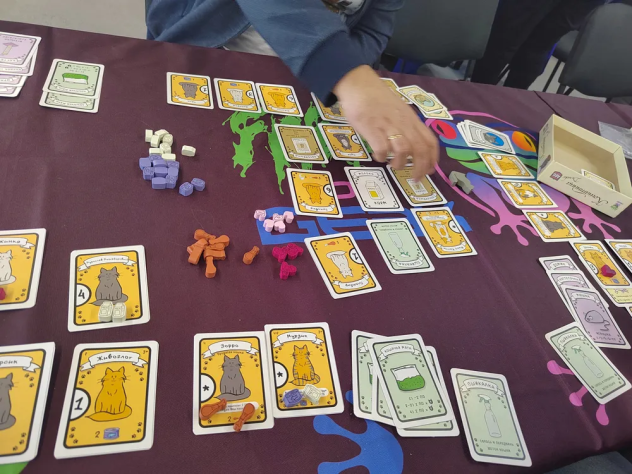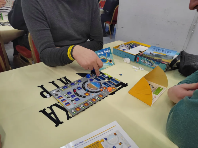 Впоследствии я видел жалобы, что было тесновато и негде сесть. Однако лично я нехватки мест не видел. Да, если хотелось поиграть в определённую настолку, то могло не повезти и надо было долго ждать (особенно это касалось игр, где нужно было ровно два участника), но вообще свободные места были в приличном количестве.