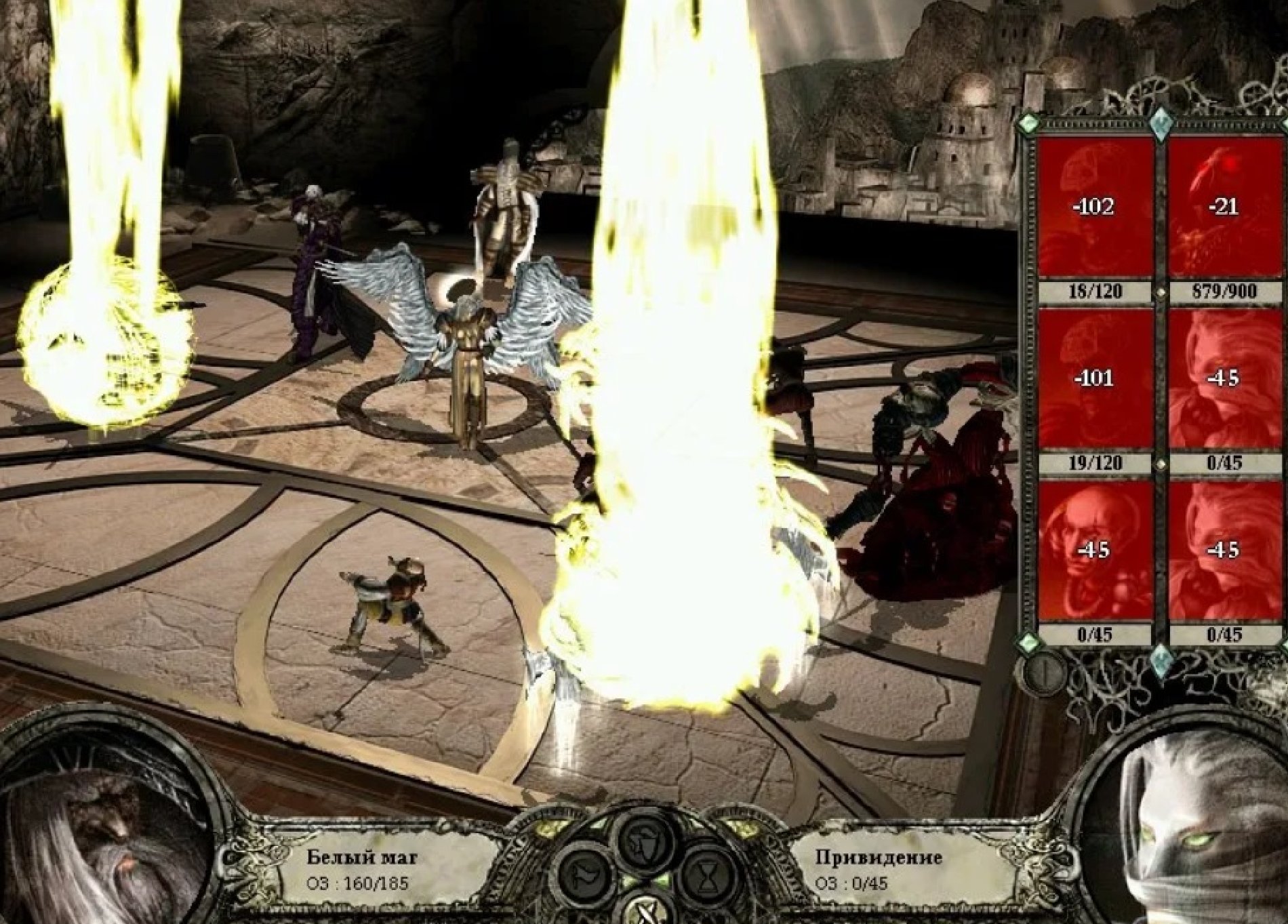 Паралич умеют снимать прорицательницы, поэтому шансы на удачу можно увеличить, когда в отряде их будет две. Единственный воин защитников империи, не подвластный параличу – торквемада. Но вполне можно обойтись и без него.
