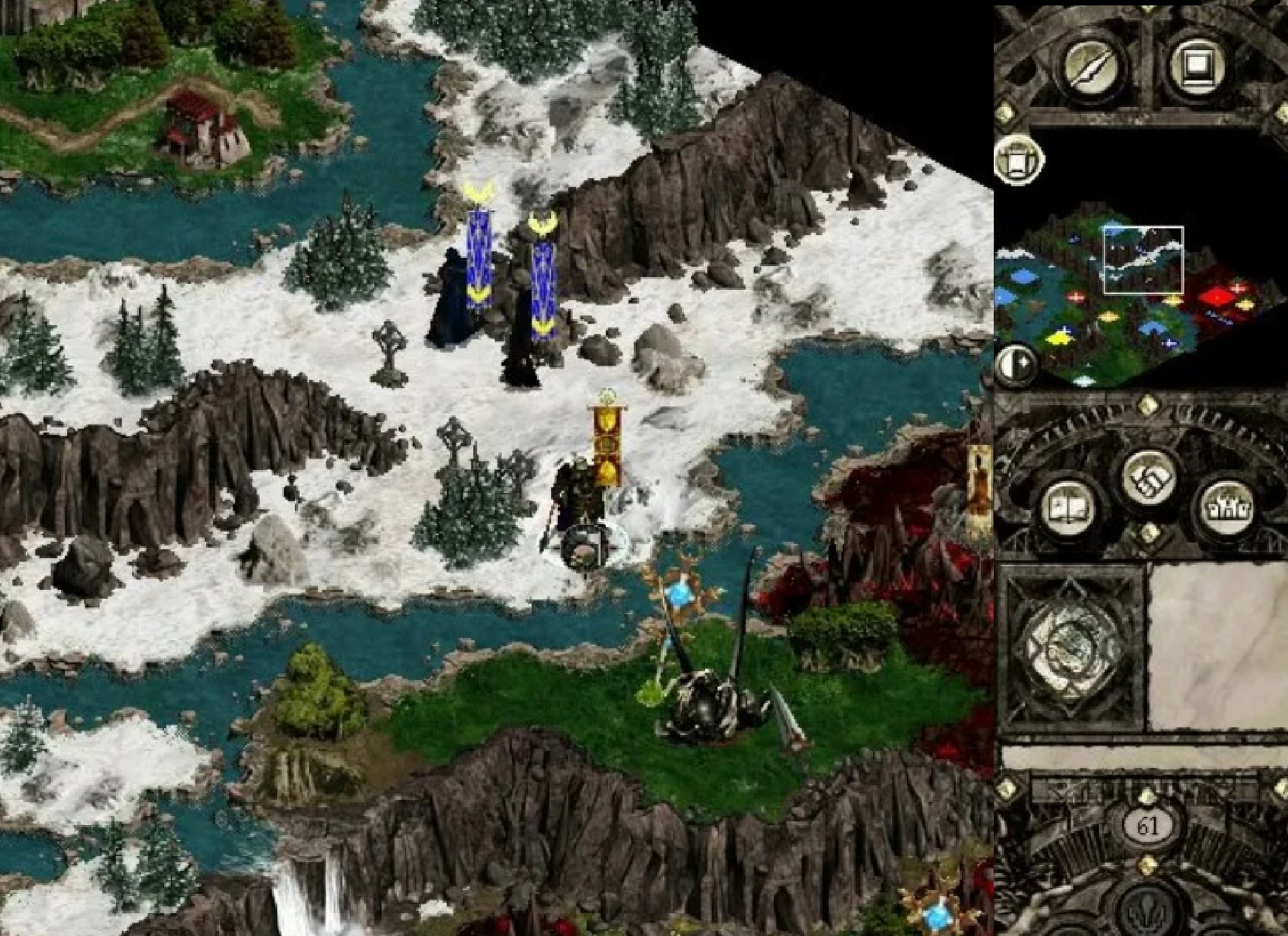 Потихоньку продолжаем зачищать местность от вражеских отрядов, опасаясь только мастеров отравлений: врачебных способностей Архангела недостаточно для того, чтобы справиться с действием яда. Не стоит связываться и с людоедом, его время наступит после появления в вашем отряде второго доктора. При первой возможности отбираем у врага все рудники, лишая его возможности быстро нанимать новые отряды и применять заклинания.