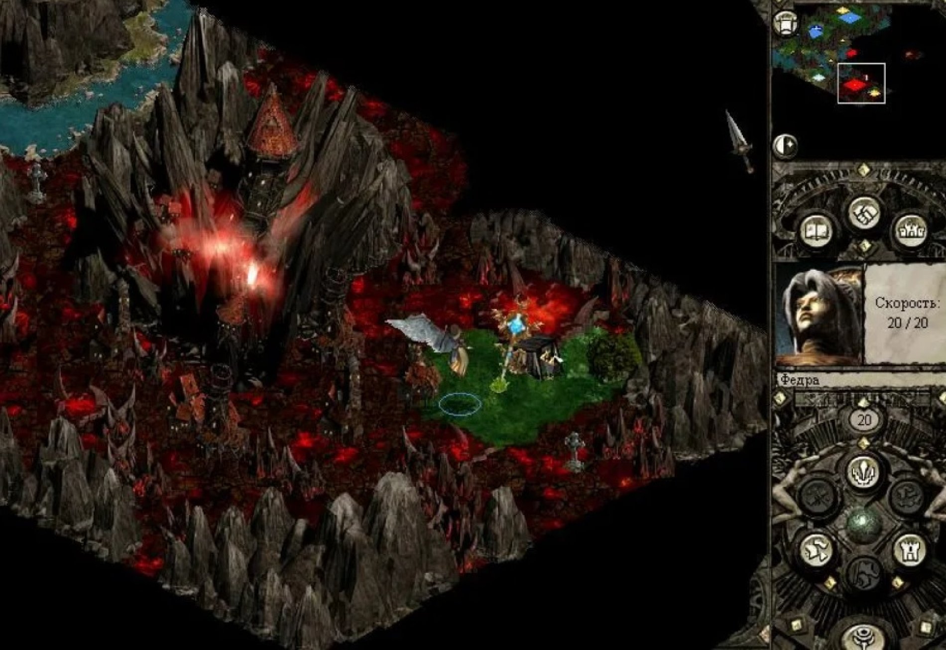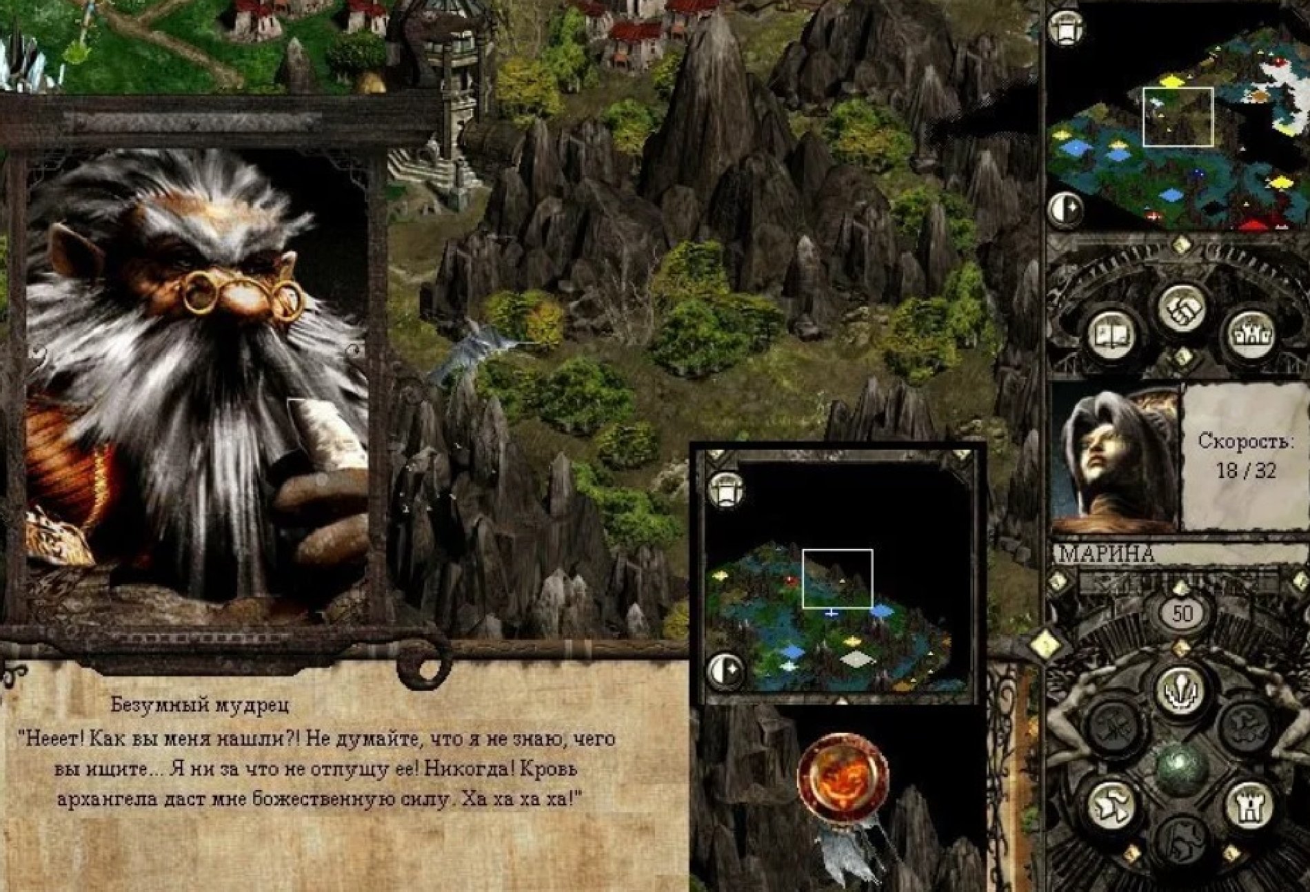 Из магических заклинаний в первую очередь выучиваем «Ускорение», затем всё, что помогает защищаться и атаковать. «Ускорение» позволяет Архангелу снять вражеский Жезл и тут же поставить на шахту свой, захватив её. (Большинство моей маны расходовалось именно на «Ускорение», чтобы защитить отряд перед серьёзной битвой, приходилось пару ночей поспать.)