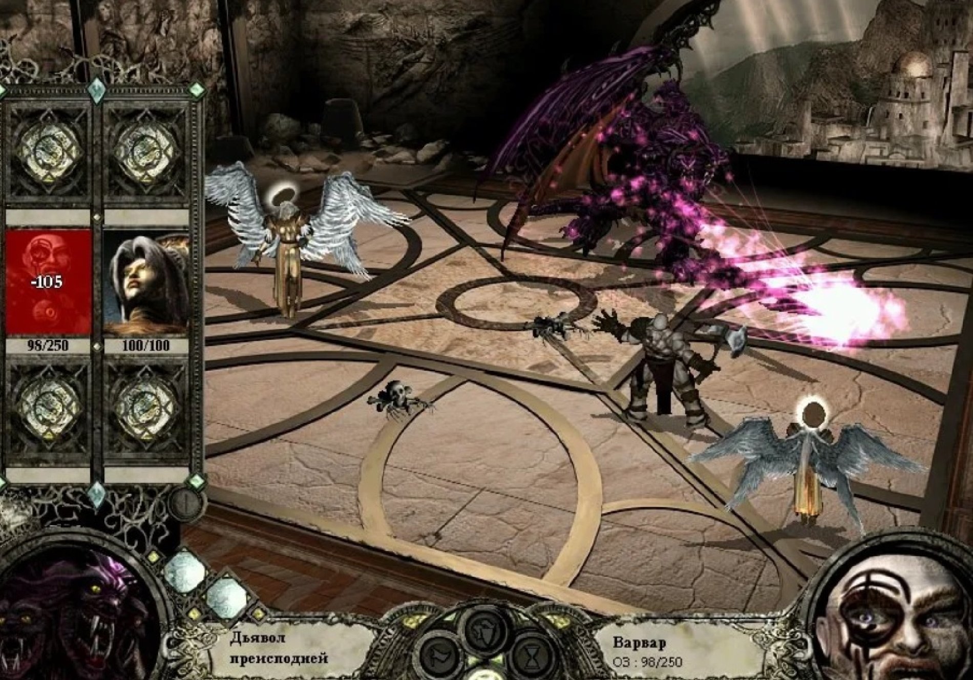 Скорее всего, демон не выдержит такой наглости и бросится на вас. Применяем все атакующие и ослабляющие заклинания и встречаем врага.