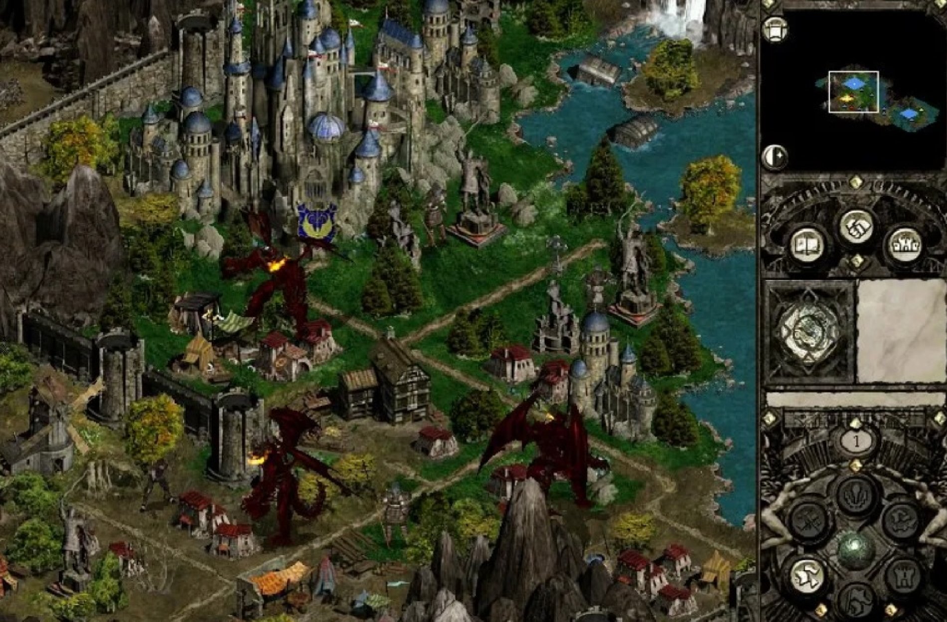 Теперь можно атаковать Демона! Может статься, что он и сам уже выступил к вам навстречу, но в первую очередь будет стараться захватить главный замок. Используя преимущество в скорости, отсеките и уничтожьте отряды его свиты; после каждого боя необходимо отбегать подальше, чтобы Демон не смог догнать нашего героя в свой ход.