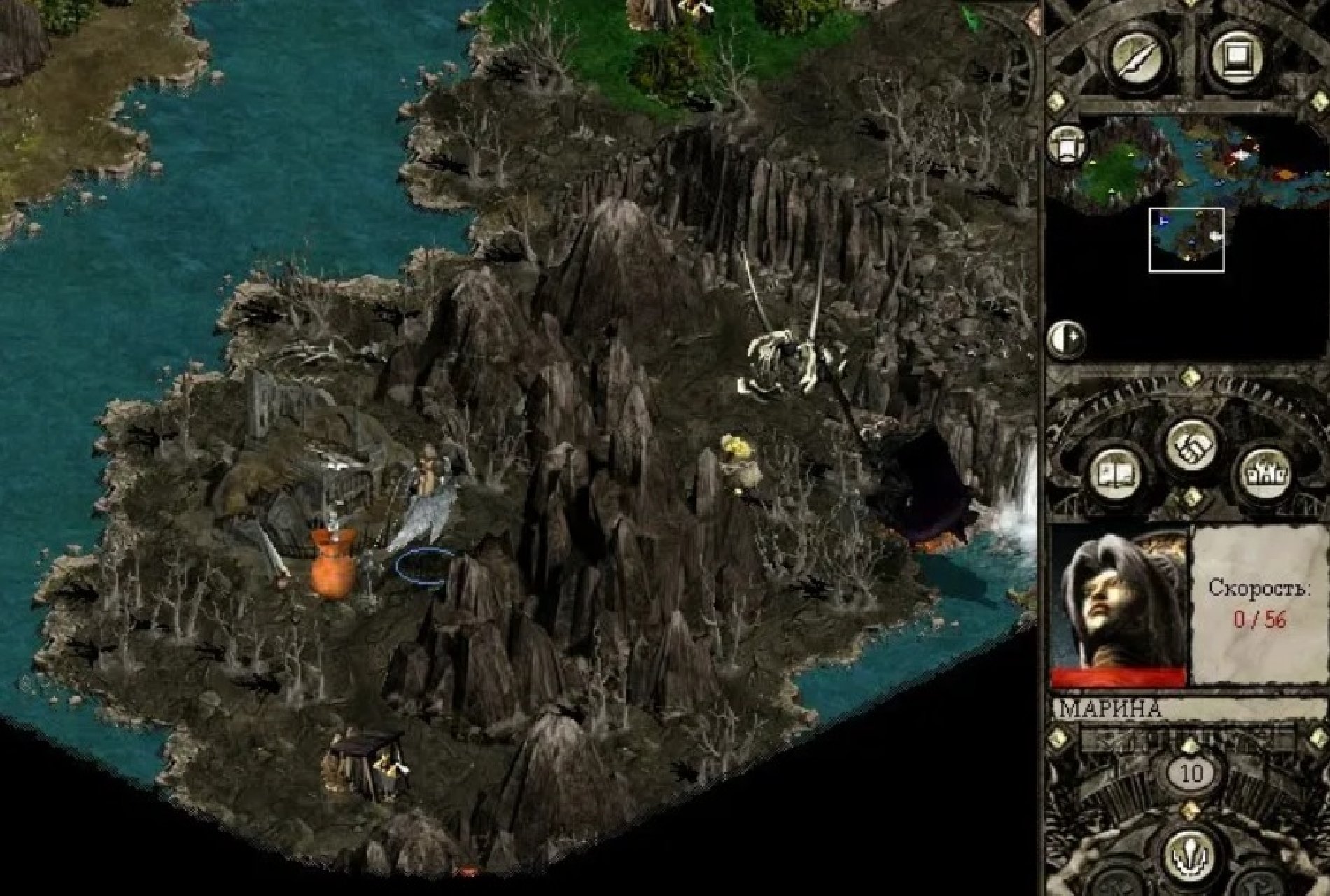 Вообще-то, непрерывный поток нежити, идущий из ущелья на северо-западе, доставляет приличные неудобства: периодически приходится бросать все дела и бежать на помощь лорду Хиллии. А тем временем враг захватывает города. Правда, шахты остаются при нас; так как у «ущельного» противника нет героев, умеющих ставить жезлы. Словом, прежде чем Архангел успела повысить недостающие уровни, вволю налеталась туда-сюда.