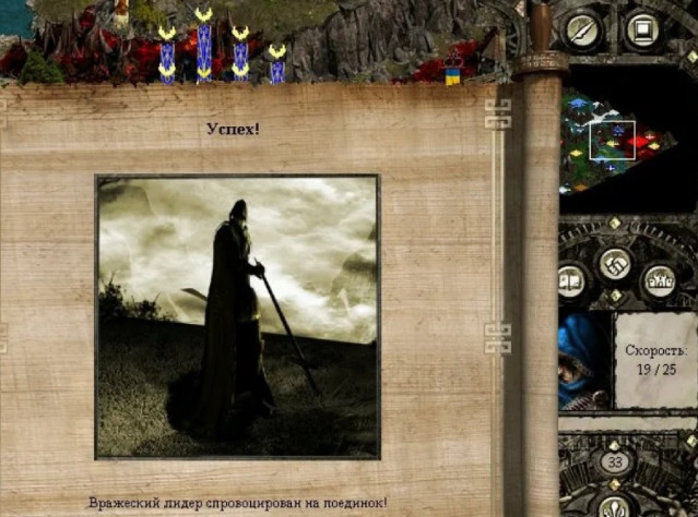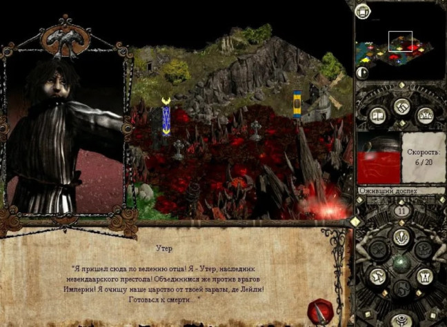 Можно приниматься и за главного злодея, приготовившего нам сюрприз: сначала на бой с вашим героем выйдет отряд вассалов, предварительно скастовав заклинание ослабления. Никаких проблем – вышлем впереди себя оживший доспех, он и примет проклятие. Если накопилось достаточно маны, можно попотчевать врагов «Армагеддоном» и другими полезными заклинаниями.