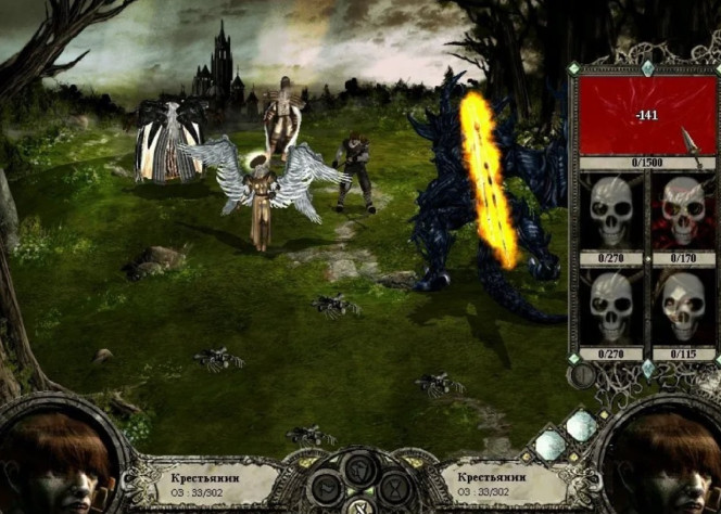 По обыкновению, крайне подло ведут себя гномы: добиваются союза, чтобы через несколько дней предать. Карта не слишком велика, и Архангел успеет поднять уровень только один раз. Но к моменту зачистки двух третей карты крестьянин перебирается из второго ряда в первый и начинает «гвоздить» не по-детски.