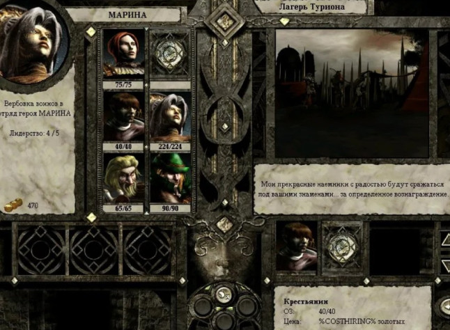 У выхода из крепости обнаружился лагерь наёмников с уникальными бойцами – крестьянами. Почему бы не нанять одного? Зачем нужен боец с сорока единицами жизни и двадцатью единицами атаки? Погодите, увидите!