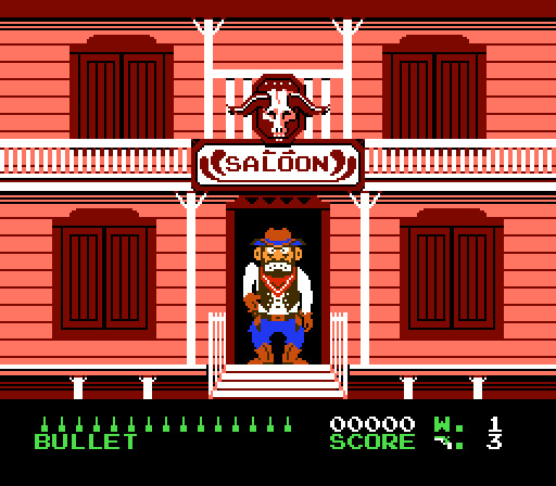 Свое путешествие на Дикий Запад начнём с вышедшего в 1984 году на Nintendo Famicom вестерна Wild Gunman. Широкую известность на постсоветском пространстве игра получила благодаря регулярному появлению на различных пиратских сборниках для народной консоли Dendy. И пускай в остальном мире тир от Nintendo не достиг большого успеха, российским геймерам возможность взаимодействия с игровым миром посредством светового пистолета была в новинку.