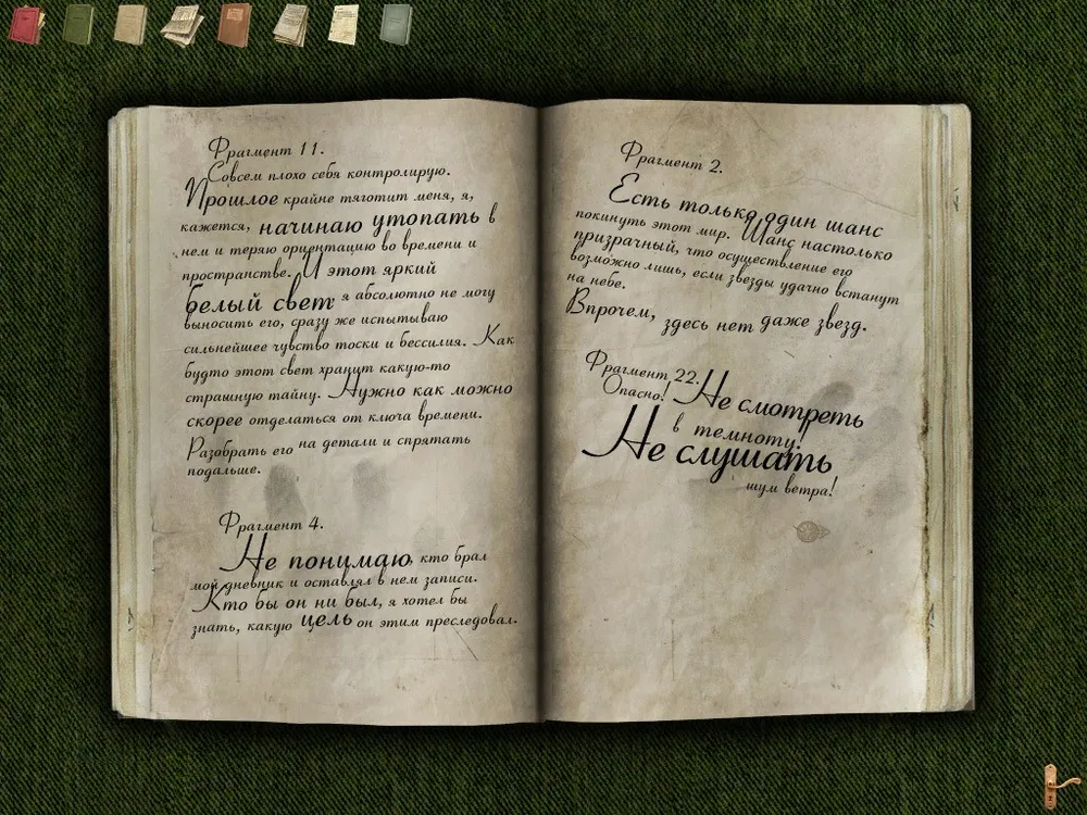 История раскрывается через аудиодневники Профессора и обрывки воспоминаний. Они озвучены не профессиональным актёром, а университетским профессором, и звучат неровно, без актёрской выверенности. За счёт этого записи воспринимаются как личные признания, а не как драматическая постановка — игроку проще поверить в происходящее.