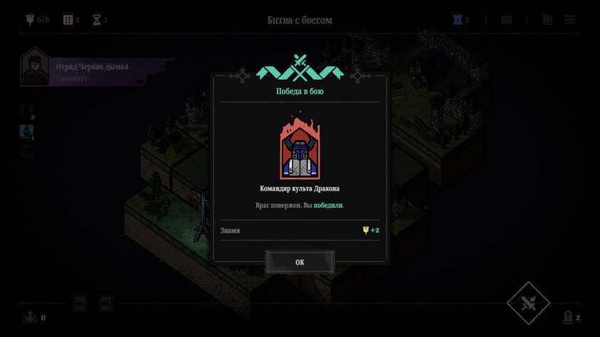 😐 Игра весьма сложная. Второй босс спамит какими-то супервоинами (относительно моих) и, такое ощущение, что ничего нельзя сделать. При этом, может кому-то этот головоломный бой понравится. Поэтому пункт и не в минусах.