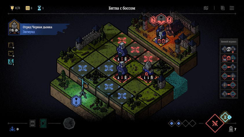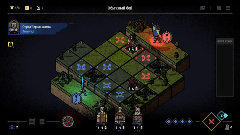 Еще имеется специальный ресурс: воля, когда играем одним из своих героев. Также на бой влияют индивидуальные особенности солдатиков. Например, если поставлю своего юнита так или этак, то он получит +1 к атаке. Вот такие штуки надо очень учитывать и читать описания воинов.