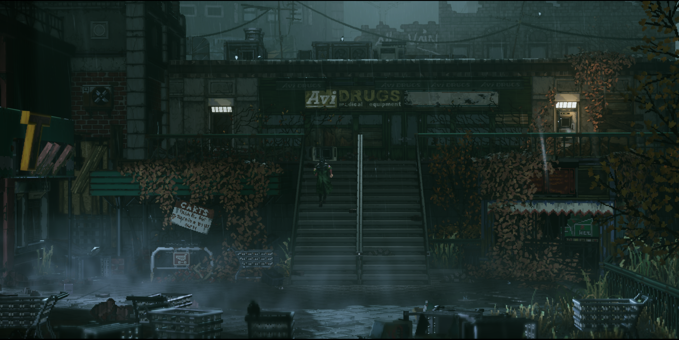 Стиль игры - это густой, «грязный» киберпанк в духе «Бегущего по лезвию» и «Джонни Мнемоника». Сочетание детального пиксель-арта и современного освещения создает атмосферу, от которой мурашки по коже.