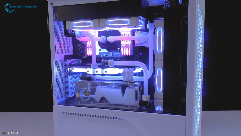 К сожалению, в этот корпус невозможно установить по-настоящему мощный и массивный воздушный кулер, а значит, придётся мириться с СЖО.