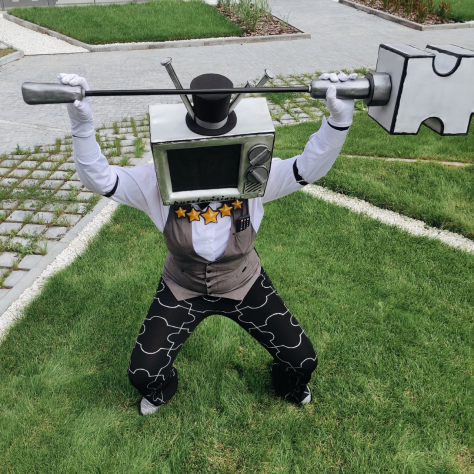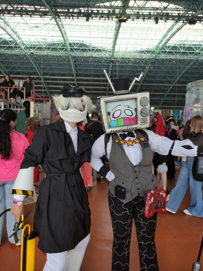 М.- Вокс – из “Отеля Хазбин". Тоже телевизороголовый. Ну и Тенна из Deltarune. Главное, что не из "Скибиди туалетов". Ну, а вот персонаж, к которому чаще всего подходили фоткаться – хорнет, определённо. Была даже локальная шутка, что мне не дают и 5 метров пройти, без просьбы сфоткаться.
